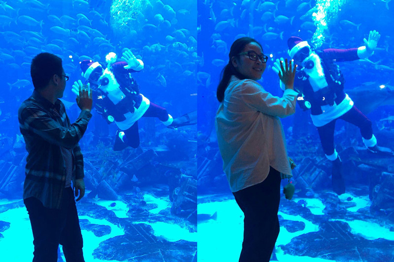 除了在展會現(xiàn)場,客戶展示產(chǎn)品,聚集眼光,創(chuàng)造貿(mào)易商機(jī);展覽之余,豪裕團(tuán)隊也精心為展團(tuán)客戶安排的迪拜地區(qū)游玩,沖沙、海底游,玩的不亦樂乎啊。恰逢圣誕期間,還有海底潛游的圣誕老人給大家打招呼哦。