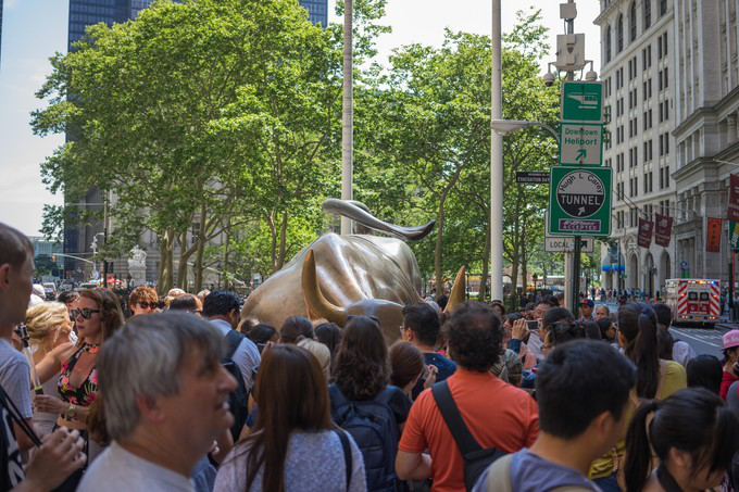 華爾街是紐約市曼哈頓區(qū)南部從百老匯路延伸到東河的一條大街道,這條街不長,但是確實(shí)美國的金融中心,可以影響到美國經(jīng)濟(jì)命脈的金融機(jī)構(gòu)都匯集于此。話說要是炒股的游客,記得來這里跟銅牛合個(gè)影,沾沾喜氣,望牛市常在。